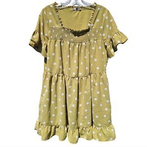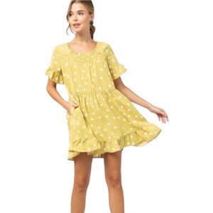 Entro Polka Ruffle Short Dress Yellow Small