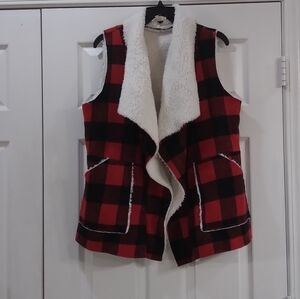 Entro Red And Black Western Sleeveless Fur Bohemian Cardigan Size M