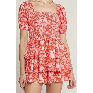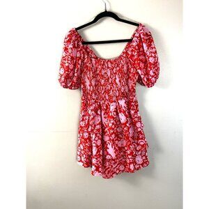 Entro Red Pink Floral Y2K Romper M Boho Romantic Grunge Festival Tiered Ruffle