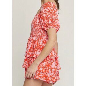 Turn up the charm with this red and pink floral tiered ruffle romper that looks like a dress, a flirty blend of Y2K nostalgia and boho romance. With cascading ruffles and a soft, fit & flare silhouette, this dreamy piece is made for twirling at festivals, date nights, or summer getaways.