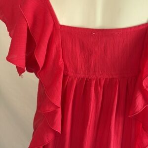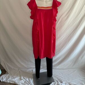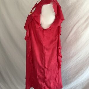 Entro red baby doll swing dress with a charming ruffled design and ric rack trim.