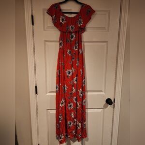 Entro Red floral romper/ maxi dress S