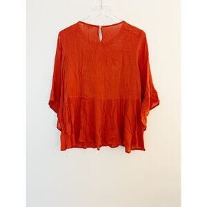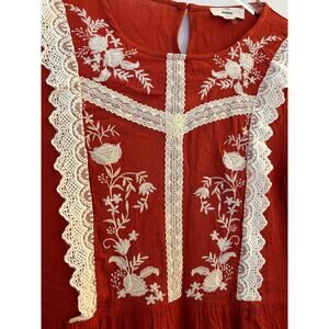 Entro Red-Orange Floral Lace Bib Boho Blouse Size Small