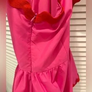 This has never been worn but the zipper was sticking a little bit for my daughter so I rubbed a pencil on the zipper to help it. You can’t see it when it’s zipped but wanted to point that out. Also, one side of the hook and eye closure is missing. Please make sure you are ok with this before buying. Otherwise the dress is in perfect condition.