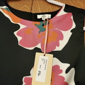 Elevate your style with this chic floral top featuring vibrant pink and black hues. The ruffle hem adds a playful touch, perfect for any occasion.