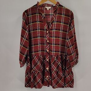 Entro Rust Red Plaid Button Down Mini Dress Size Medium Quarter Sleeve