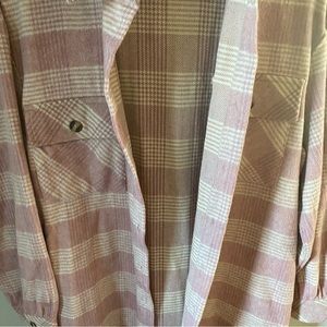 Entro pink and cream plaid shacket with pockets. Runs oversized. Size small. Worn one and in excellent condition. No flaws.
