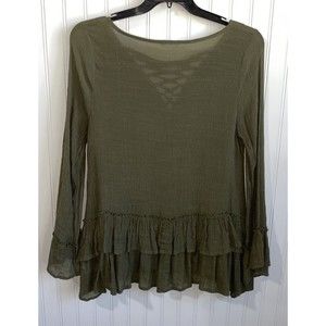 Entro Shirt Womens Large Green Laced VNeck Ruffle Long Sleeve Semi Sheer Boho