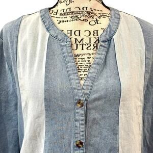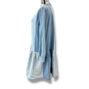 Entro Size L Blue Cotton Chambray Shirt Dress Pockets Color Block