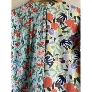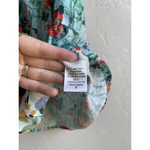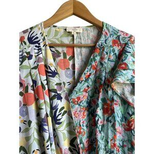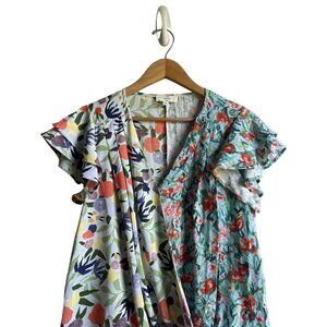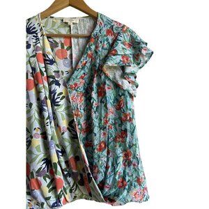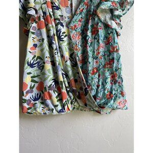 Entro Size Small Floral Top Mixed Print Faux Wrap Short Sleeve V-Neck Colorful A