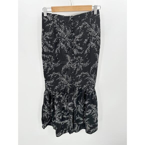 Entro Skirt Women Small Black White Printed Button Front Elastic Waist Maxi