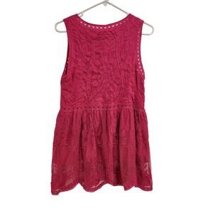 Entro Sleeveless Embroidered Lace Overlay Boho Blouse Pink Size Small