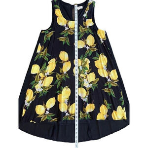 Entro Sleeveless Flowy Black Mini Shift Dress Yellow Lemon Print Size Small