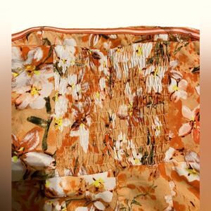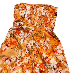 Beautiful floral capri-length strapless romper. Top is stretchy with smocked back and zipper close in back. Sash knots in front. Pants are wide-legged. Excels condition. My daughter loved but outgrew quickly. Size small.
