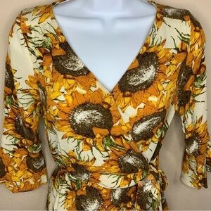 Entro Sunflower Print Romper Womens Small Stretch Floral Colorful Summer Ruffle