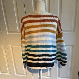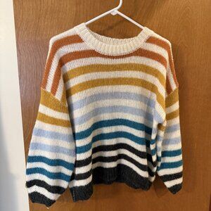 Entro Sweater Womens Size Small Rainbow Striped Crew Neck Oversized Comfy Cozy