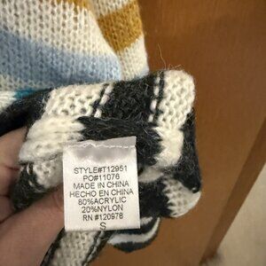 The Entro Sweater is a colorful and cozy women's piece featuring a rainbow striped design, making it perfect for casual or travel occasions. Made from a blend of nylon and acrylic, this chunky-knit sweater has a crew neckline and long sleeves, providing a comfortable and oversized fit. With a regular fit and all-season appeal, this pullover sweater is ideal for adding a touch of festival or beach flair to your wardrobe mix. Perfect for embracing various themes and maintaining a stylish and trendy look. Excellent Condition. Shipped with USPS. From a smoke free and pet free home.