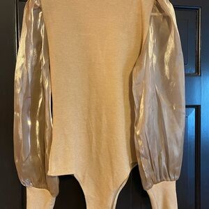 Elegant tan ribbed top by Entro. Simple and versatile design.