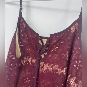 Entro Tank Dress Medium Crochet Lace Boho Burgundy NWT lace up back