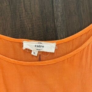 Entro Tie Dye Ruffle Tank Top, in orange, cream and purple tones. Adjustable spaghetti straps. Size S.