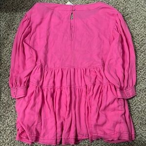This vibrant pink blouse from Entro features a feminine flared design with a gathered bottom portion. The soft fabric and round neckline make it a comfortable and stylish choice for any casual occasion.