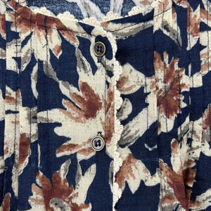 Entro Top Lace Floral Boho Bell Sleeve Sz M Navy Blue Orange button down