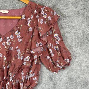 Entro Top Ladies Blue w/ Metallic Gold Leopard 3/4 Sleeves Ruffled