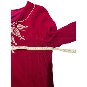 Entro Tunic Womens Fuchsia Bell Sleeve Embroidered Long Sleeve Top Tasseled M