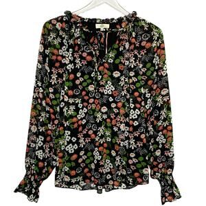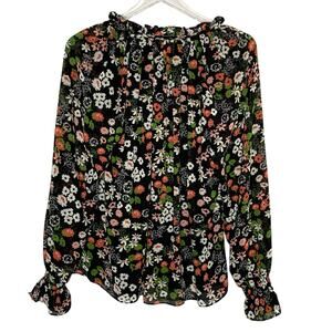Entro USA S NEW Womens Floral Ruffle blouse Black Flowy Boho Peasant