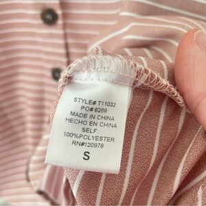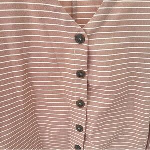 Entro V-Neck Button Down Pink Striped Blouse small nwot