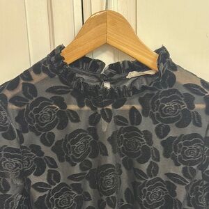 Entro Whimsigoth Black Sheer Blouse with Roses. Size M.