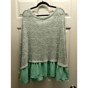 Entro Women's Size Large Open Knit Mint Green Flounce Hem Oversized Long Sleeve Top