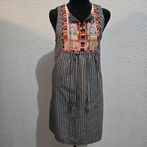 Entro Womens Bohemian Stripe Sleeveless Tunic Dress size S With Embroidered Fron