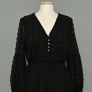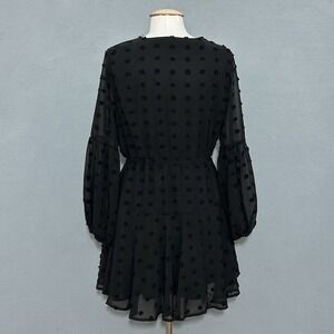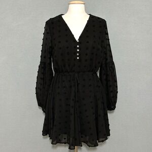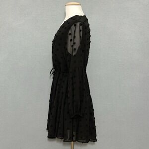 Entro Womens Dress L Black Puff Dot Sheer Chiffon Ruffle Whimsigoth Fairy Grunge