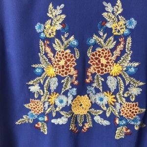 Entro Women’s Embroidered Tunic Blue size L Short Bell Sleeves