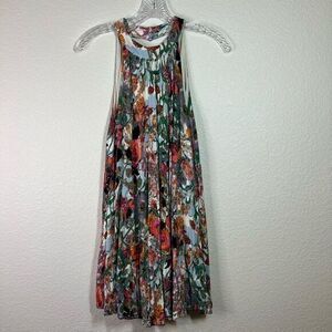 Entro Women's Floral High Neck Cut Out Sleeveless Mini Dress Multi-Color Small