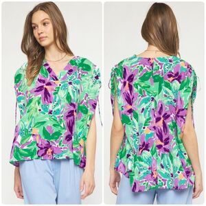 Entro Women’s Oversized Tropical Floral Print Elle Blouse / New with tags / Size S/M