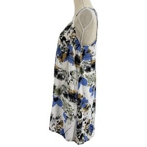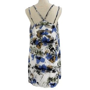 Entro Strappy Abstract Flower Print Summer Sundress Mini Shift Dress Womens Size Medium. Adjustable straps. Cut out detail on the back. 100% Rayon with 100% polyester lining.