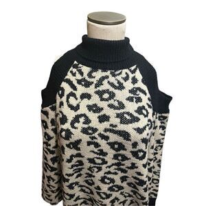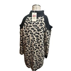 Entro Womens Sweater Dress Tunic Cold Shoulder Animal Print Soft Size M New