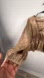Chic tan blouse with a V-neckline. Features a gathered waist and long sleeves. Perfect for versatile styling.
