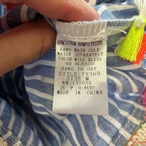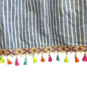 Entro Womens Blue White Striped Off Shoulder Tassel Preppy Hip Blouse Medium