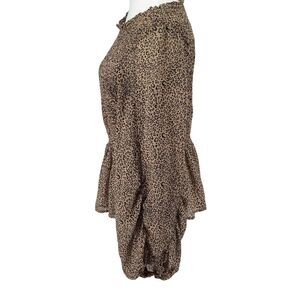 Entro Women’s Smocked Leopard Print Blouse Peplum Long Sleeve Top Size M EUC