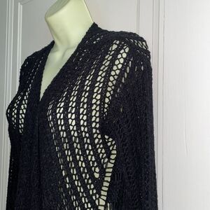 Entro black open crochet weave buttonless/open front cardigan sweater with fringe