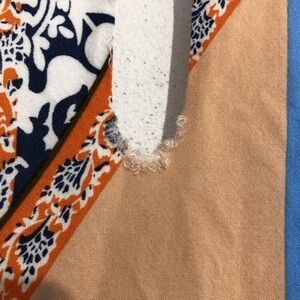 In excellent used condition other than some fraying by the button in the back which I have pictured. Still in very usable condition!