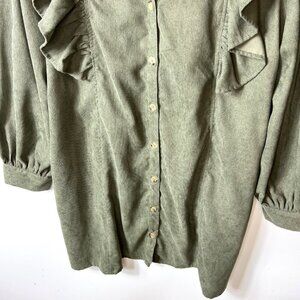 Excellent condition This Entro button-up dress is a stylish and versatile addition to any wardrobe. The dress features a solid green color, long sleeves, and a v-neckline, making it suitable for a variety of occasions including travel, casual outings, and workwear. The dress is made from polyester and is knee-length, making it a great choice for any season. It has a classic theme and is suitable for plus-sized women, with a size type of 1X. The garment care instructions recommend hand wash only. This dress is perfect for women who want a timeless and elegant look.