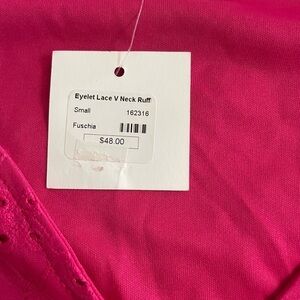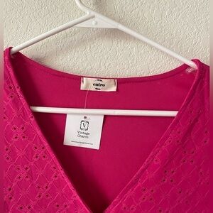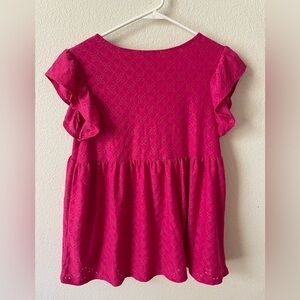 NWT Entro hot pink ruffle sleeves eyelet blouse. V neck size small. $48 original price