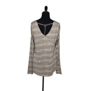 Entro light brown striped front crossed asymmetrical long sleeves v neck top size M