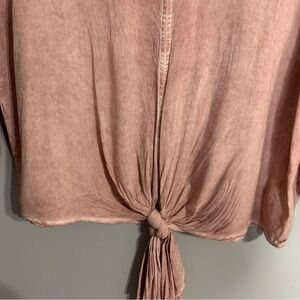 Entro peachy pink vneck boho shirt sleeve blouse with tie. Size M
