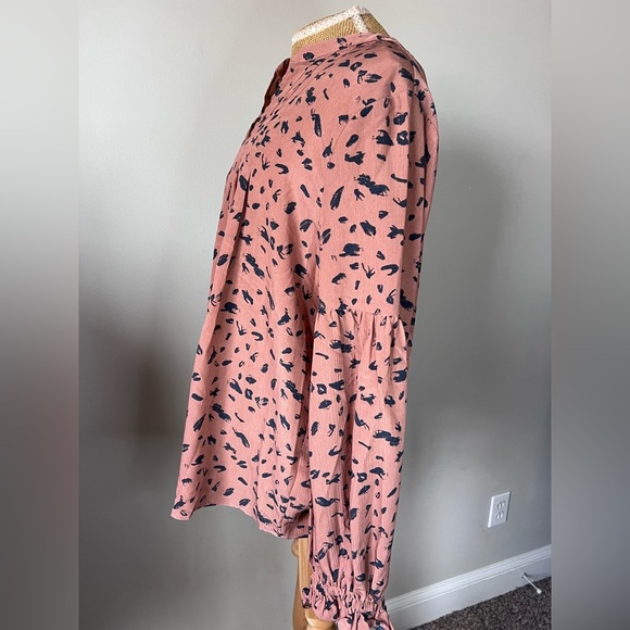 Entro pink long puffy sleeve blouse with black markings size Large