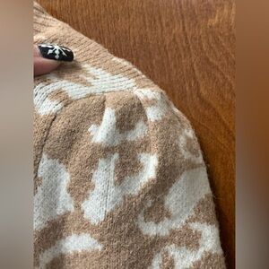 The absolute cutest short sleeve tan and white sweater from Entro. Has small pleating on the shoulder. A white print throughout the sweater. Perfect casual wear or for the office just great for anything! Can easily be dressed up or worn very casual.